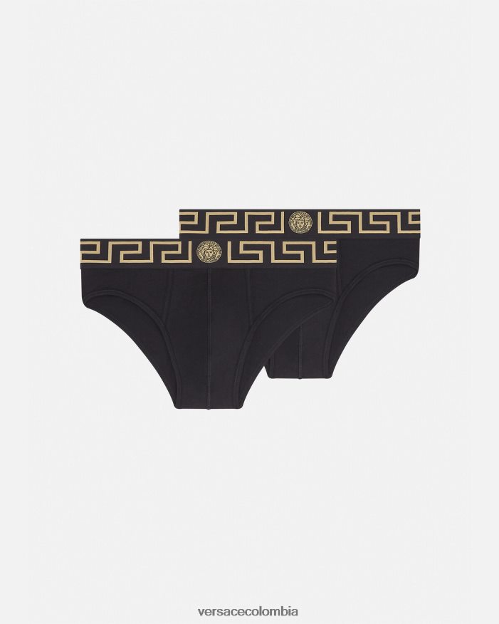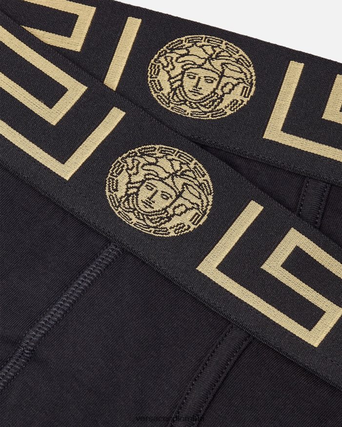 un conjunto de 2 calzoncillos de algodón con motivos de greca y medusa central en la cinturilla elástica.