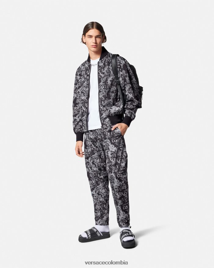 hombres pantalones de alta costura con logo Versace negro y estampado 2RP40F2431 ropa