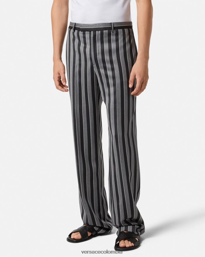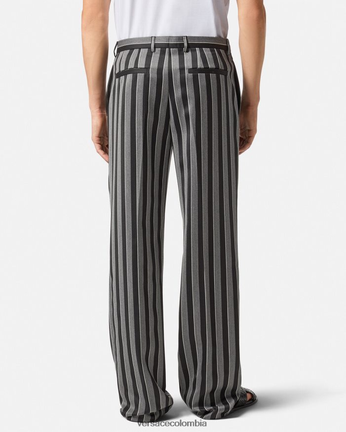 Confeccionados en lana virgen con un corte fluido y de pierna ancha, estos pantalones presentan rayas militares en todas partes y un cierre de corchete y cremallera ocultos para un estilo elegante y sartorial.
