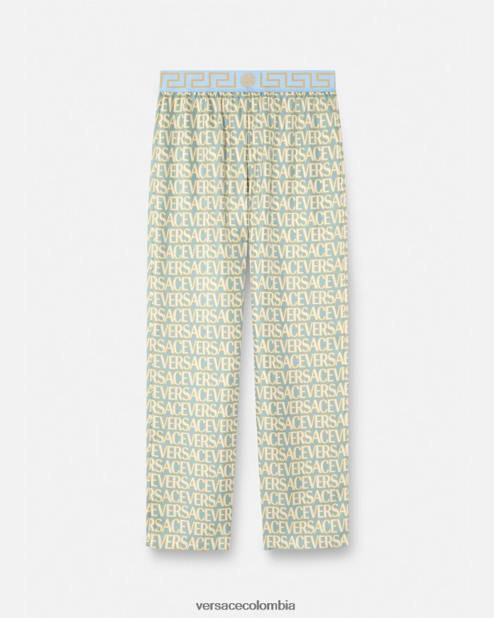 Estos pantalones de pijama de sarga de seda presentan un estampado integral del logo de Versace con una cinturilla elástica con borde de Greca.
