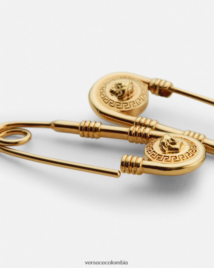Estos aretes colgantes, una representación icónica del ADN de la marca, presentan el imperdible en acabado dorado de Versace. Todos los artículos de joyería de Versace no contienen plomo ni níquel. Todos los materiales son hipoalergénicos.