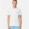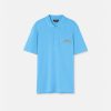 Este polo de manga corta está confeccionado en piqué de algodón con una tapeta de tres botones y presenta un logotipo de Versace bordado en el pecho con un motivo barroco de conchas.