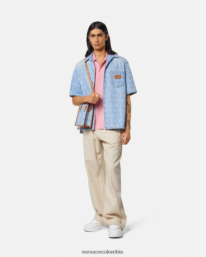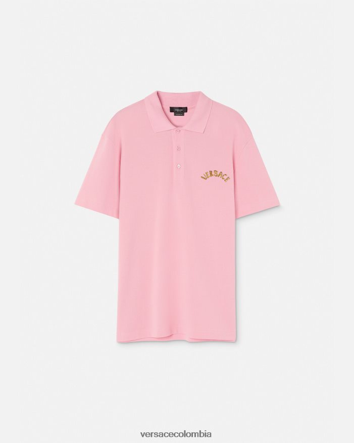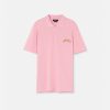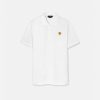 Este polo de manga corta está confeccionado en piqué de algodón con una tapeta de tres botones y presenta un logotipo de Versace bordado en el pecho con un motivo barroco de conchas.