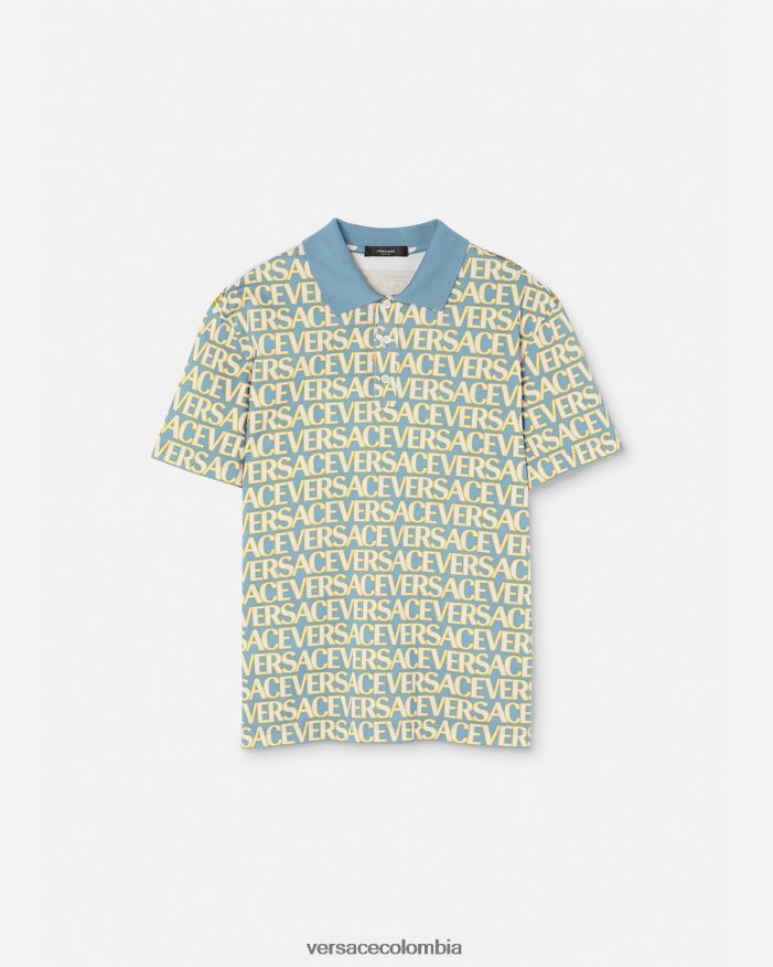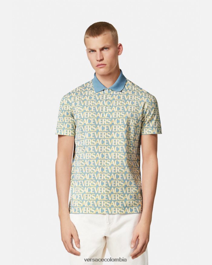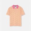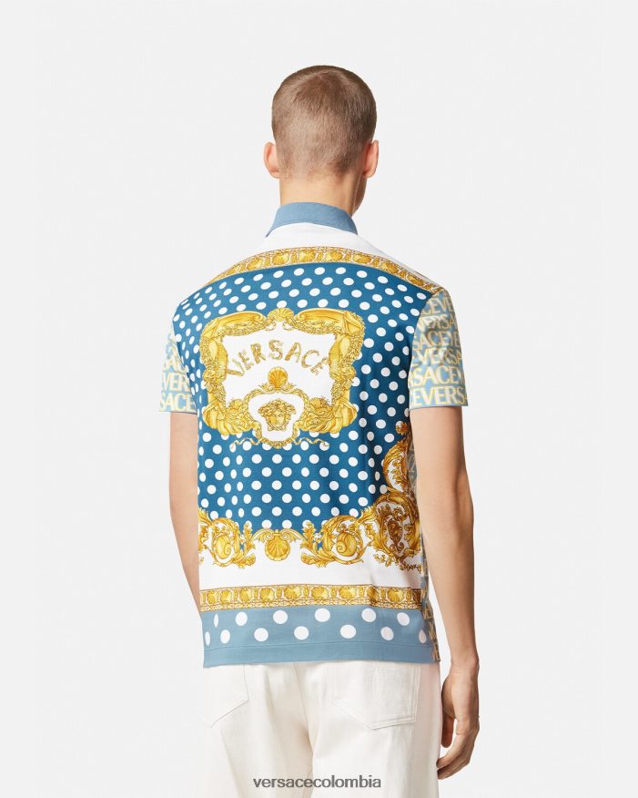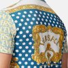 Este polo de manga corta está confeccionado en piqué de algodón y presenta un diseño de paneles con un logotipo de Versace en toda la parte delantera y un estampado de lunares barrocos en la parte trasera.