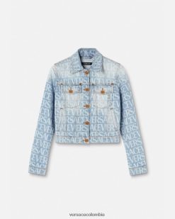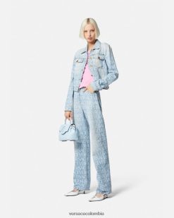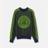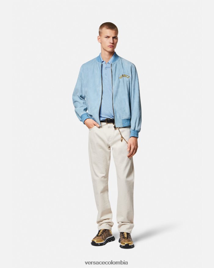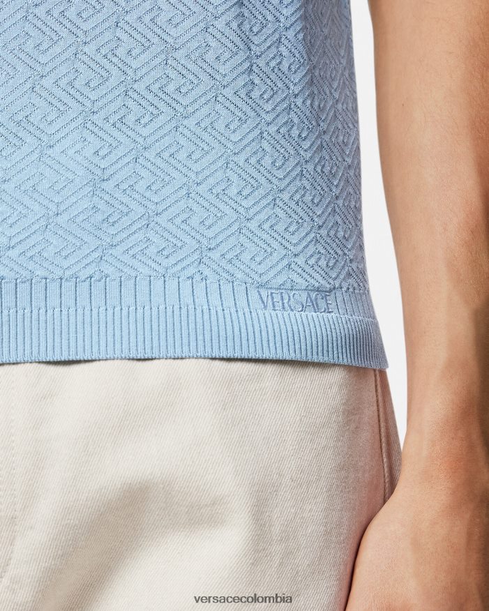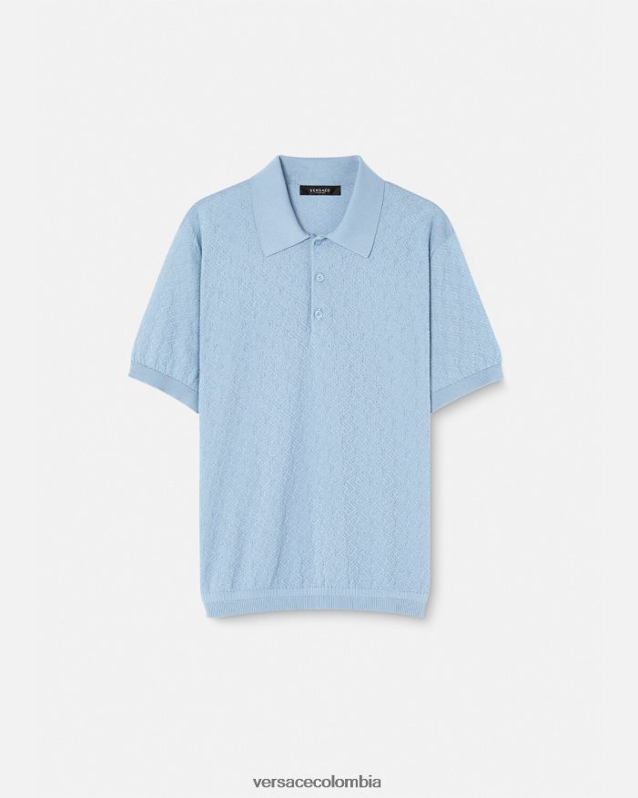 hombres polo de punto de manga corta la greca Versace azul 2RP40F1330 ropa