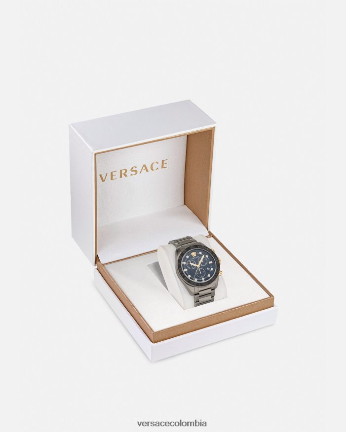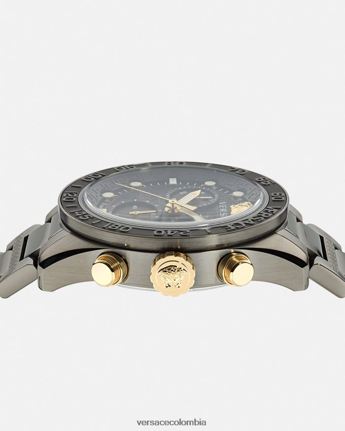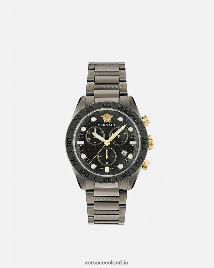 - esfera: esfera negra con Versace por toda la prenda, patrón de greca y greca en la esfera interior; logotipo de versace y medusa a las 12h