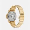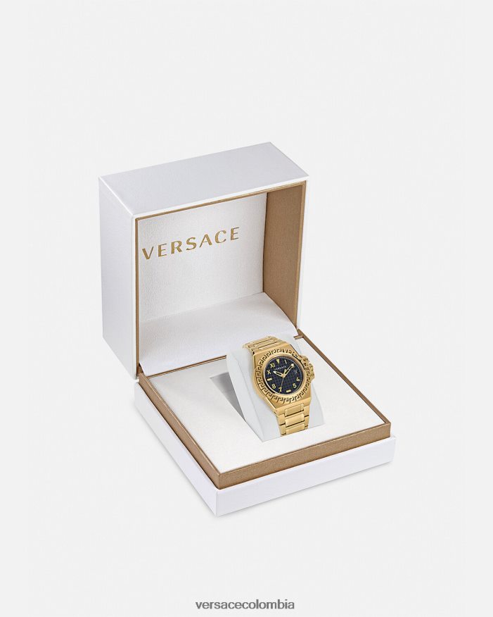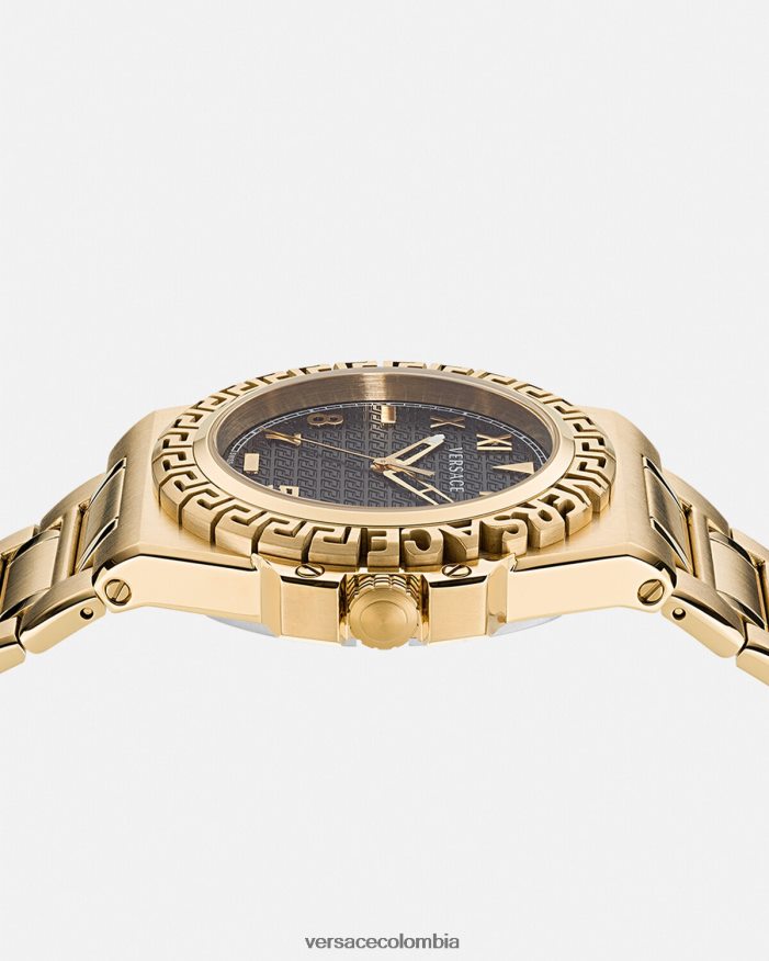 - Caja: redonda de IP color champán de 44 mm con diseño de Greca y logotipo de Versace en el anillo