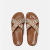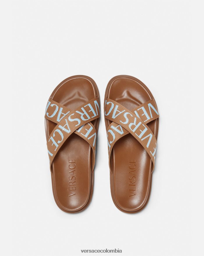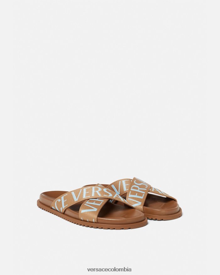 Estas sandalias con punta abierta cuentan con tiras cruzadas de jacquard con un patrón tonal de Versace en toda la prenda. Este diseño se asienta sobre cómodas suelas moldeadas.