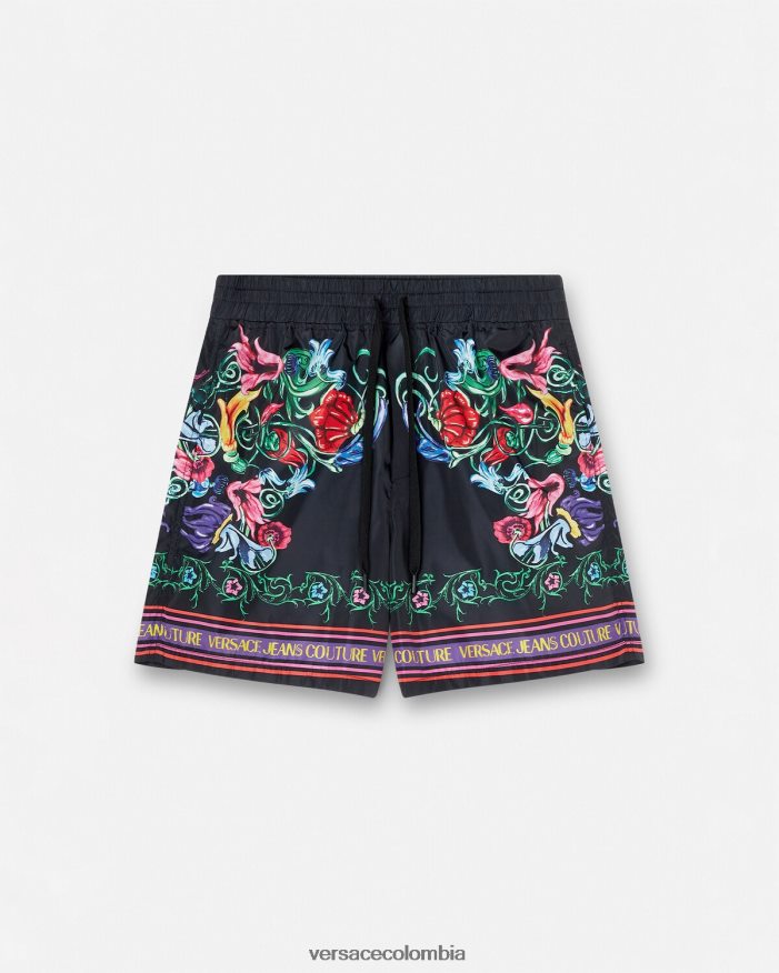 Estos pantalones cortos tienen una cintura elástica con cordón y cuentan con un estampado de jardín con emblema en V por toda la prenda.