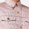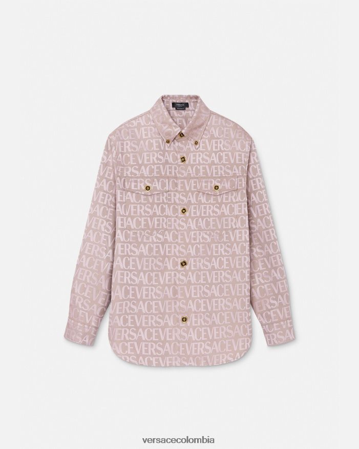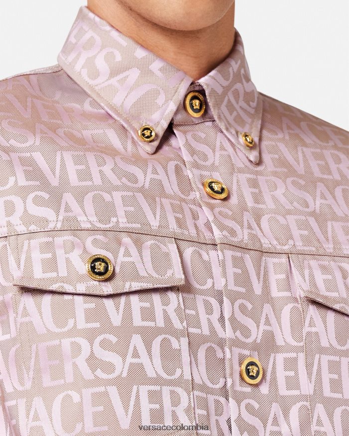 una sobrecamisa de manga larga con un estampado integral de jacquard de Versace y botones de medusa esmaltados.