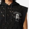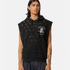una sudadera con capucha sin mangas hecha de jersey de algodón, con cortes de diamantes y una interpretación a la maschera del logotipo del equipo universitario, un símbolo orgulloso de pertenecer a la familia versace.