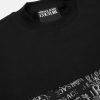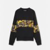 Esta sudadera de punto con cuello redondo presenta un panel con estampado de alta costura con logotipo en contraste en la parte delantera y en las mangas.