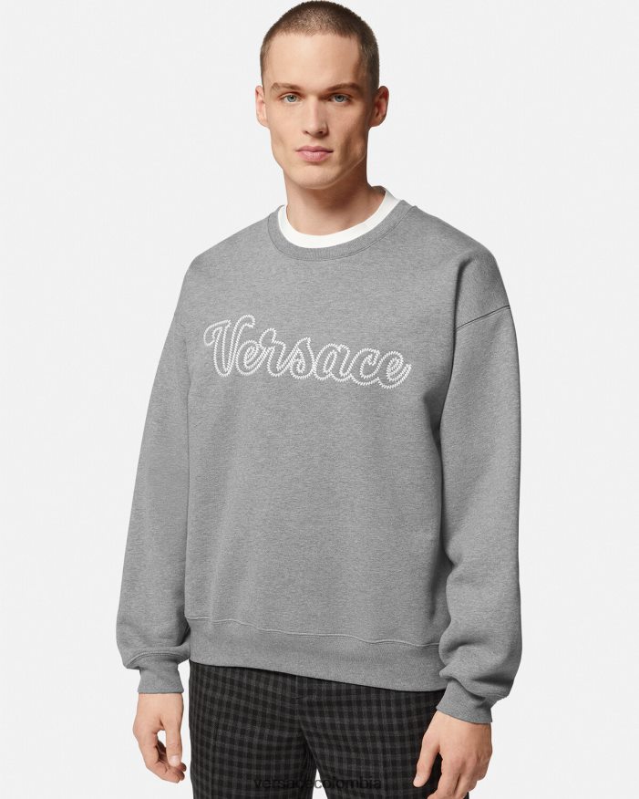 Con un diseño de cuello redondo, esta sudadera de punto de algodón tiene un ajuste regular con hombros ligeramente caídos, un cálido forro polar y presenta un logotipo universitario cosido, un símbolo orgulloso de pertenecer a la familia Versace.