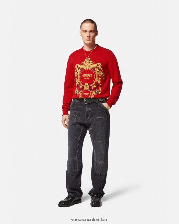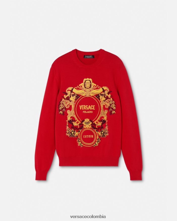 hombres suéter con bordado barroco en intarsia Versace rojo 2RP40F1345 ropa