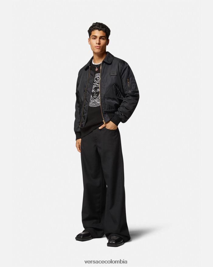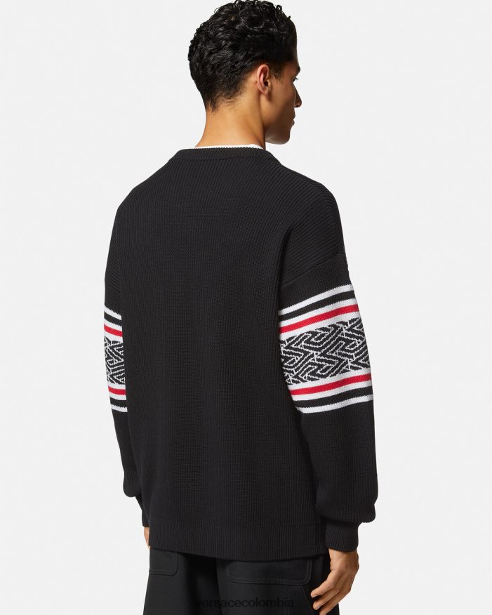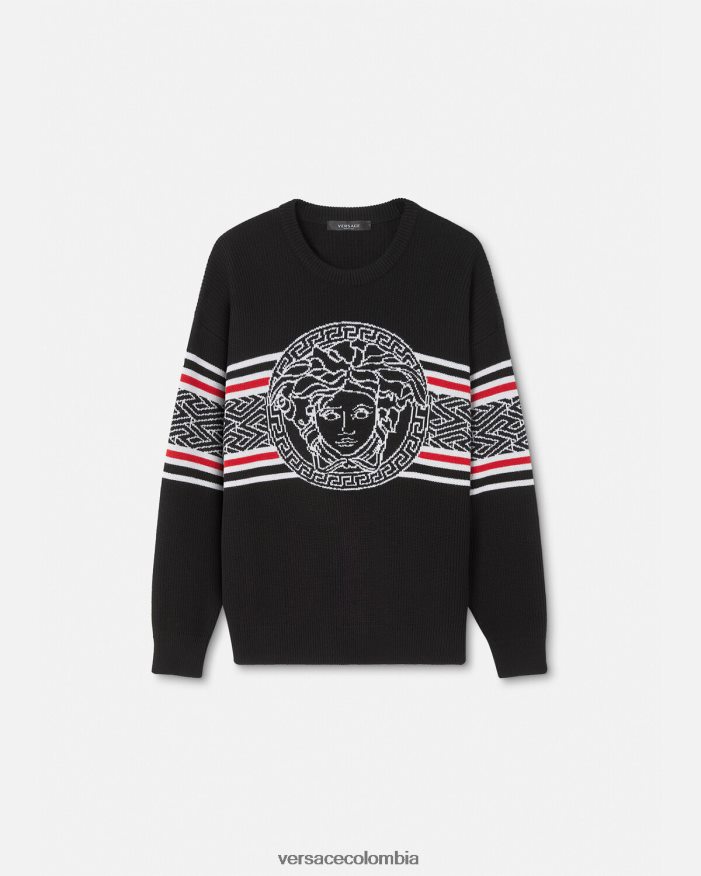 hombres suéter con medusa a rayas en jacquard Versace negro 2RP40F1344 ropa