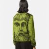 Este suéter de cuello redondo, tejido en jacquard de algodón ligero, presenta el estampado la maschera, una referencia clásica al teatro y la ópera.