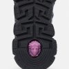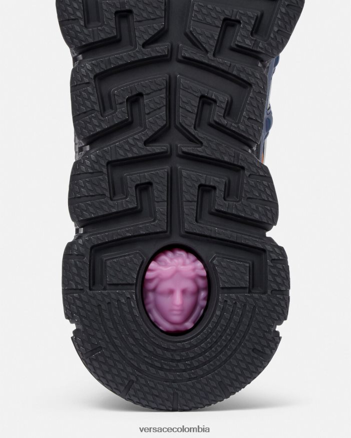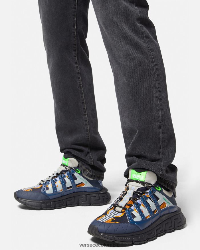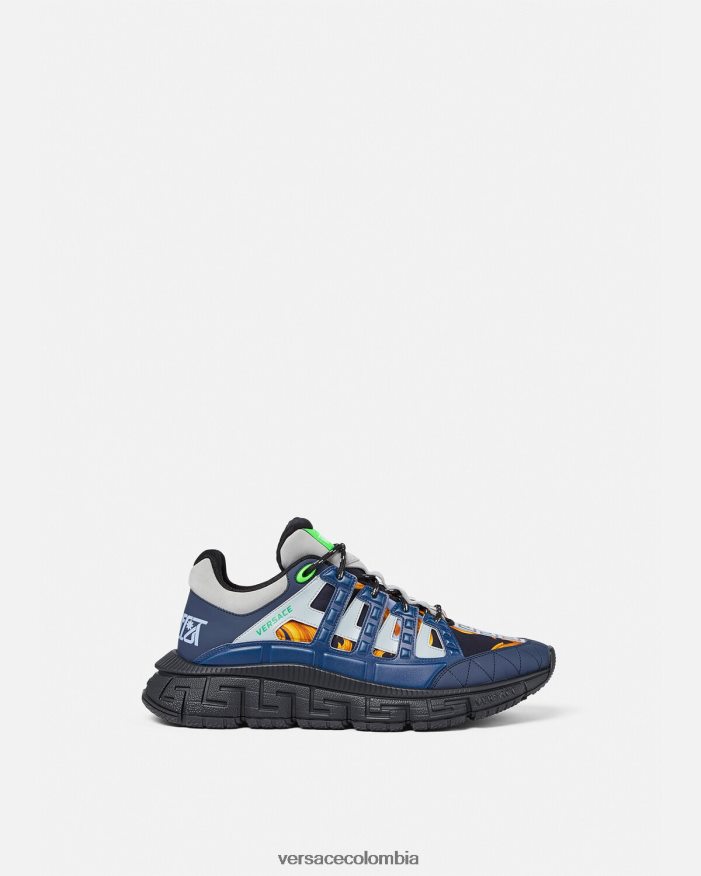 Las zapatillas Trigreca aportan innovación a la estética en constante evolución de la marca. Con un estampado barroco 660, las ejecuciones tridimensionales de greca en las suelas ofrecen un aterrizaje impactante con el “sistema de amortiguación greca”. En un sutil guiño a la ciudad natal de Versace, la parte superior tiene una discreta impresión de las coordenadas de Milán.