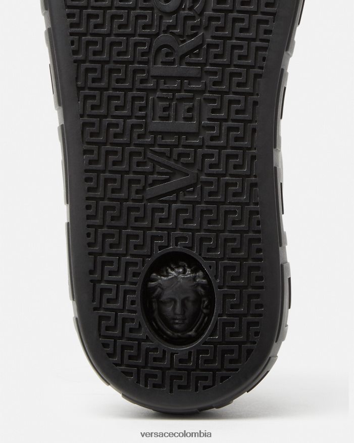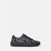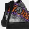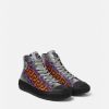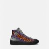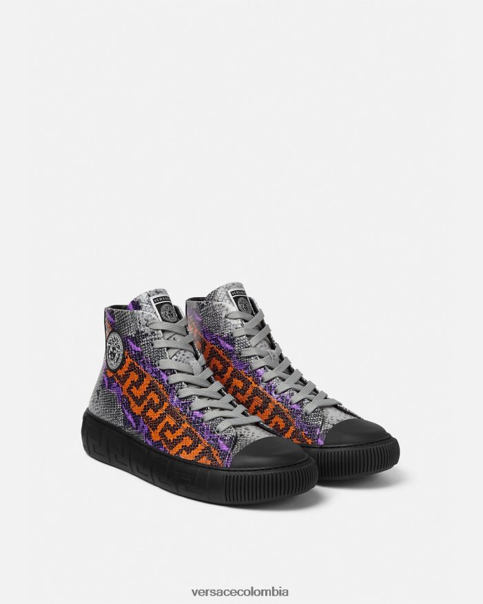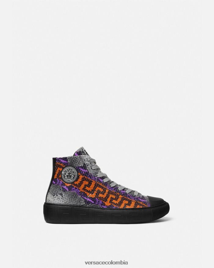 La silueta de caña alta se caracteriza por un patrón de greca grabado sobre suelas de goma vulcanizada, con parte superior de cuero con un estampado gráfico de greca de pitón. un parche con el logo lateral acentúa el estilo con cordones.