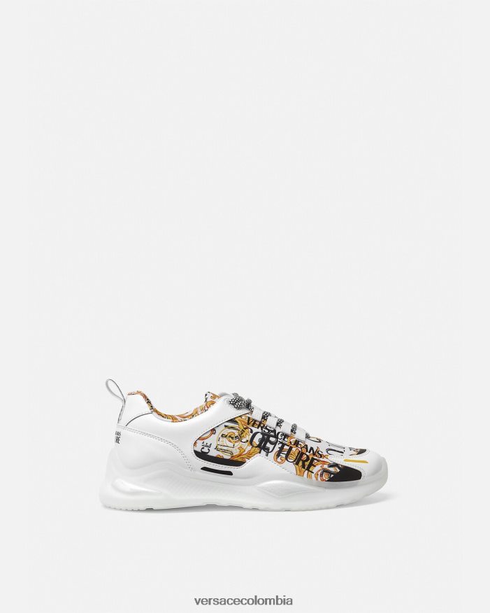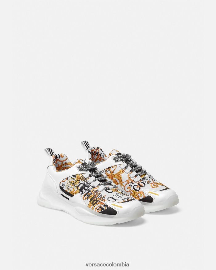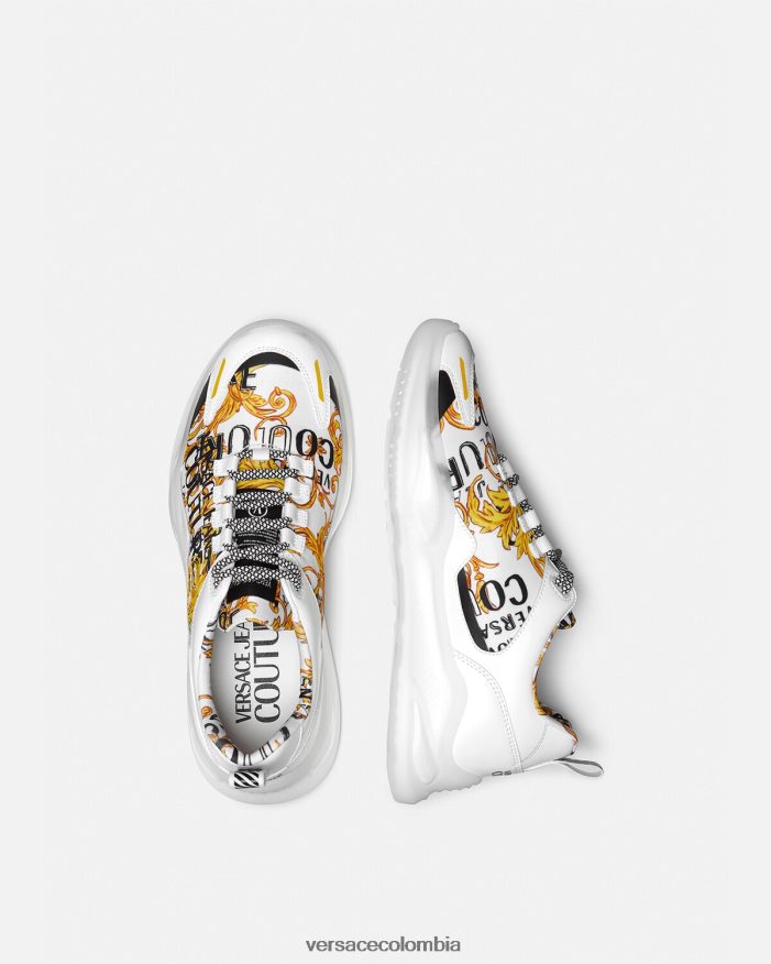 hombres zapatillas de alta costura con logo Levion Versace oro y blanco 2RP40F2456 zapato