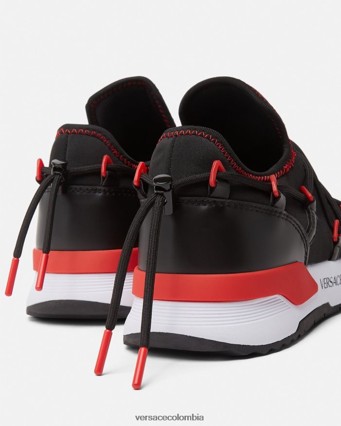 hombres zapatillas dinámicas Versace negro y rojo 2RP40F2454 zapato