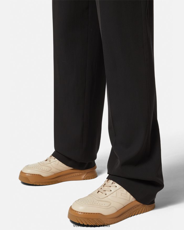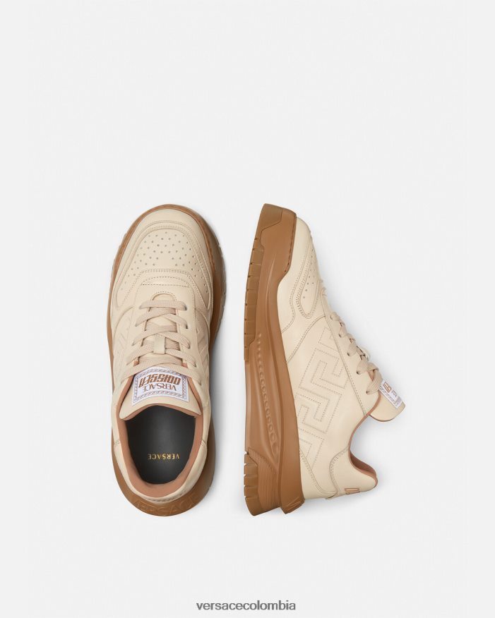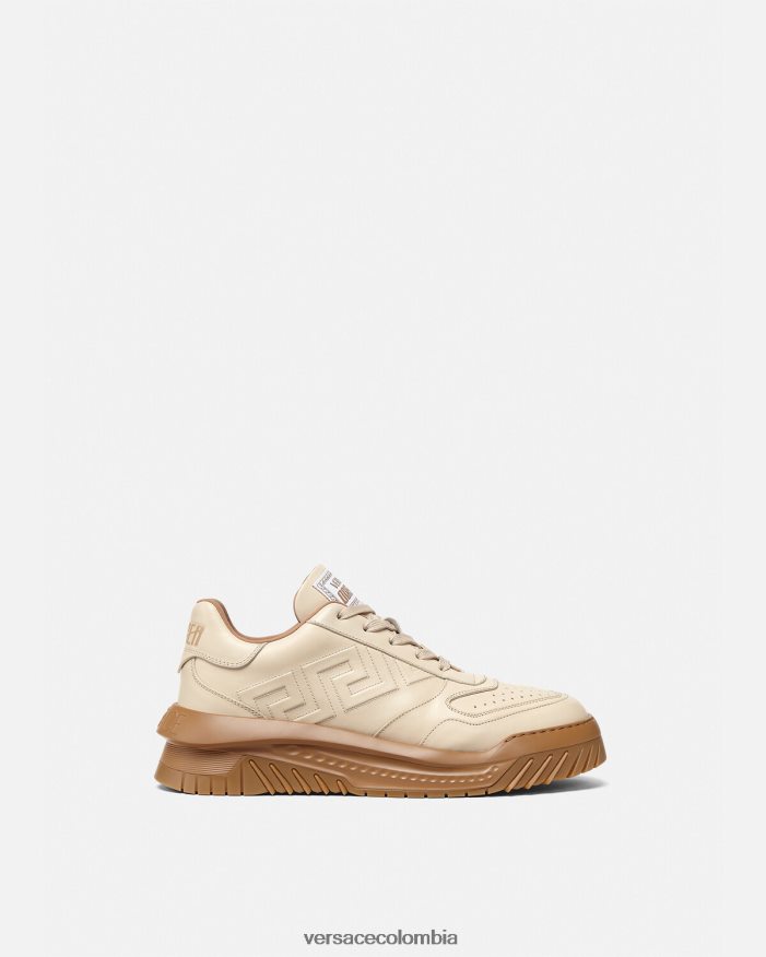 Con un motivo de Greca cosido en los laterales, estas ligeras zapatillas Odissea tienen suelas de goma dinámicas para un aterrizaje llamativo. Están detallados con un logotipo grabado en el talón.