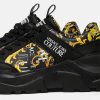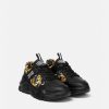 Zapatillas bajas con cordones y suelas gruesas de goma con inserciones con estampado del logo de alta costura-