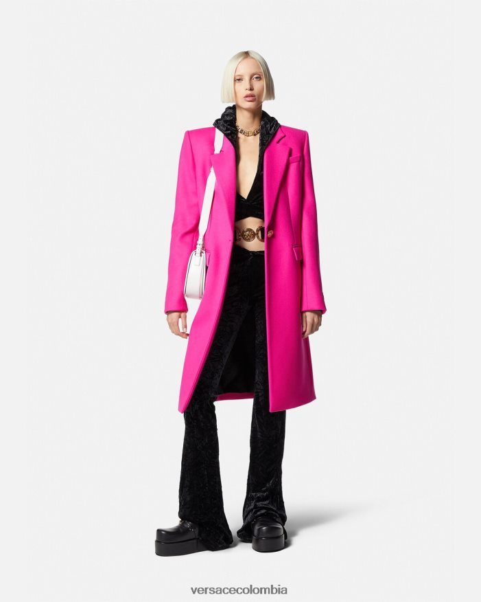 Confeccionado en lana virgen con una construcción totalmente forrada, este abrigo Versace entallado tiene un cuello afilado con muescas y bolsillos laterales con solapa. Los botones Medusa acentúan el cierre de botonadura sencilla y los puños.