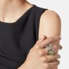 Este anillo cilíndrico presenta flores de cristal multicolores en una banda de greca con púas. En el interior aparecen un logotipo y una talla de Versace grabados. Todos los productos de joyería de Versace no contienen plomo ni níquel. Todos los materiales son hipoalergénicos.