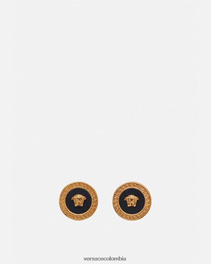 Aretes con detalles de esmalte y una medusa central enmarcada por grabados de greca. Todos los productos de joyería de Versace no contienen plomo ni níquel. Todos los materiales son hipoalergénicos.