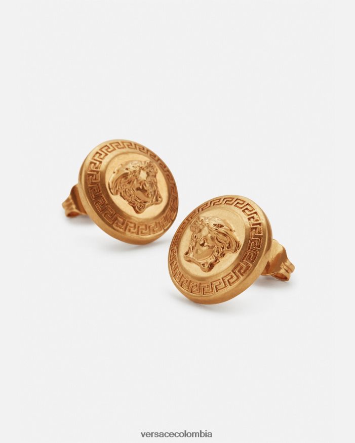 Estos aretes, un estilo icónico, cuentan con un motivo de medusa tradicional rodeado por una greca grabada. esta pieza tiene una calidad de color con efecto vintage. Todos los artículos joya de Versace no contienen plomo ni níquel. Todos los materiales son hipoalergénicos.