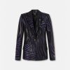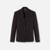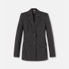 Hombros afilados y entallados aparecen en este blazer de botonadura sencilla con elegantes rayas diplomáticas y una impecable solapa con muesca para una silueta poderosa.