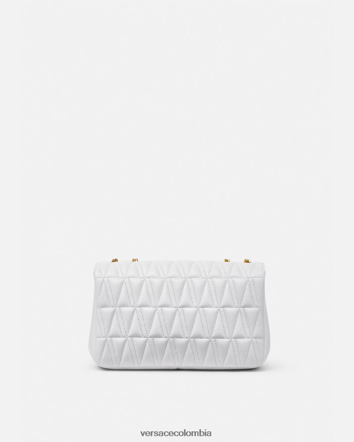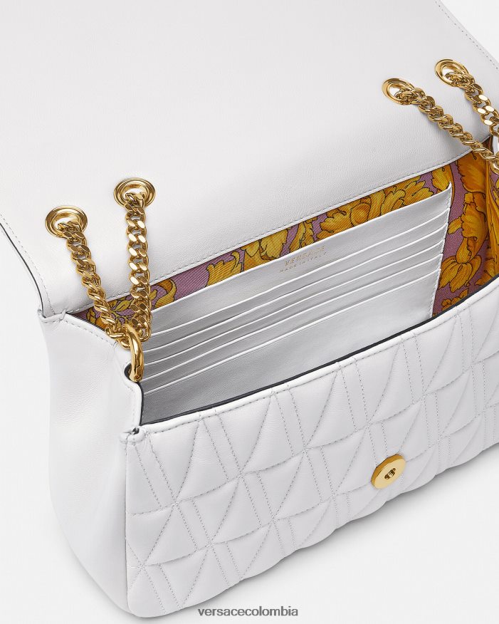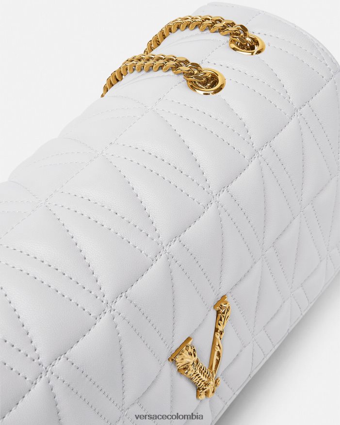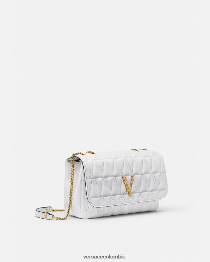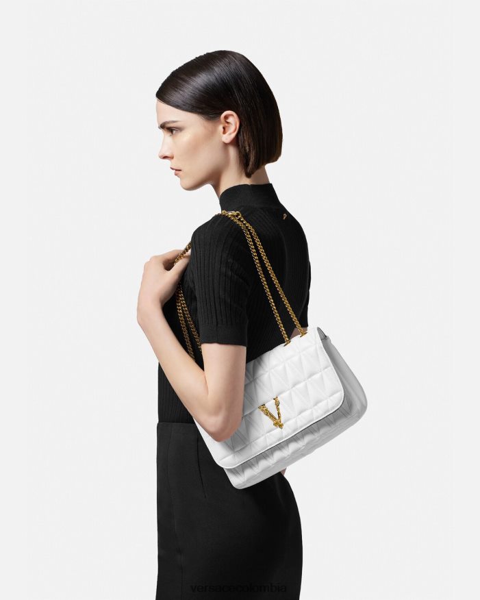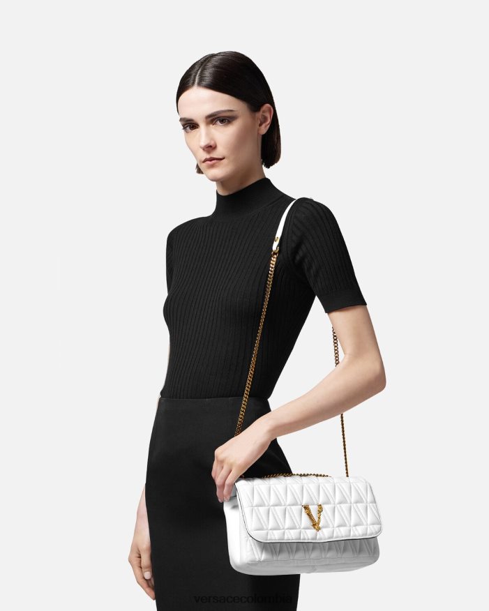 El bolso de hombro Virtus, que toma su nombre de la deidad romana de la virtud y el valor, está adornado con el emblemático herraje en forma de V barroco. Confeccionado con piel de cordero acolchada y flexible en forma de V, este elegante modelo presenta un forro con estampado barroco.
