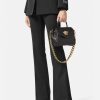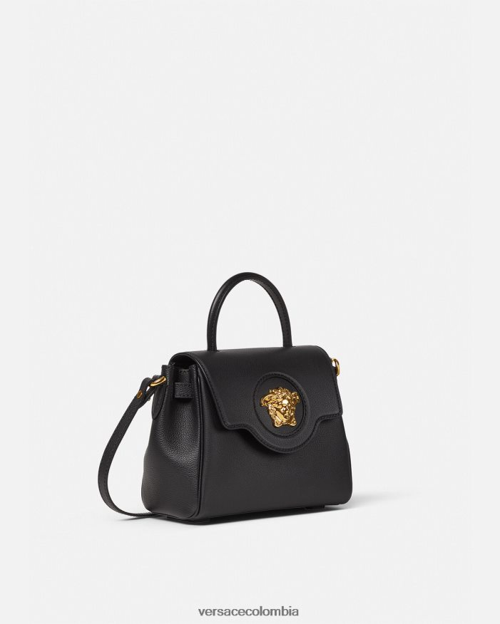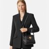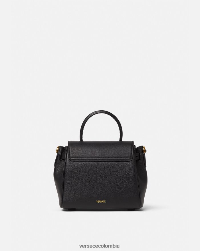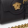 Elaborado en Italia con cuero de primera calidad, el último bolso de Versace está adornado con una placa de Medusa, la misma decoración que se descubrió en las puertas de la primera sede de la marca en Milán. La silueta holgada se puede lucir en la muñeca o cruzada sobre el hombro, y cuenta con dos correas para los hombros desmontables: una de cuero y otra de cadena.