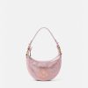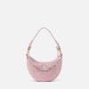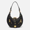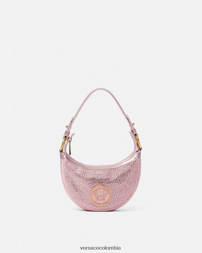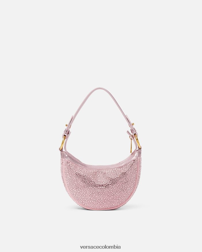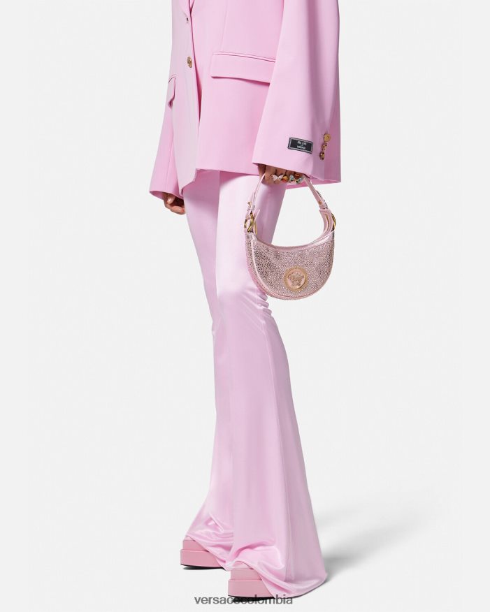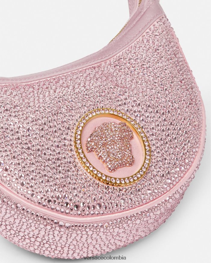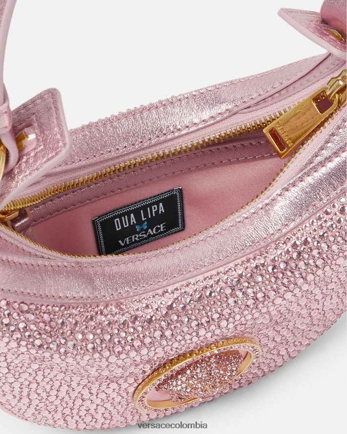 Una edición mini de la silueta hobo, el bolso de hombro repetido está adornado con cristales y ribetes de cuero. Un emblema de la Medusa adornado con cristales tonales acentúa el accesorio. dua lipa x versace es una cápsula de estilos diseñados en colaboración con dua lipa y presentados en la pasarela de cannes.