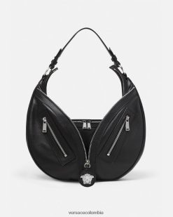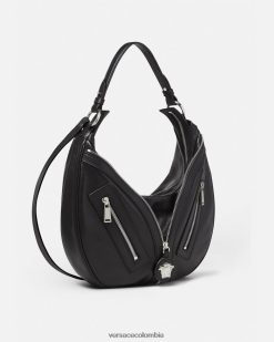 Una edición mini de la silueta hobo, el bolso de hombro repetido está adornado con cristales y ribetes de cuero. Un emblema de la Medusa adornado con cristales tonales acentúa el accesorio. dua lipa x versace es una cápsula de estilos diseñados en colaboración con dua lipa y presentados en la pasarela de cannes.