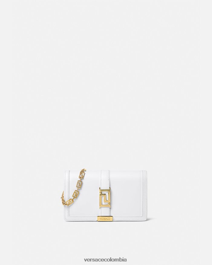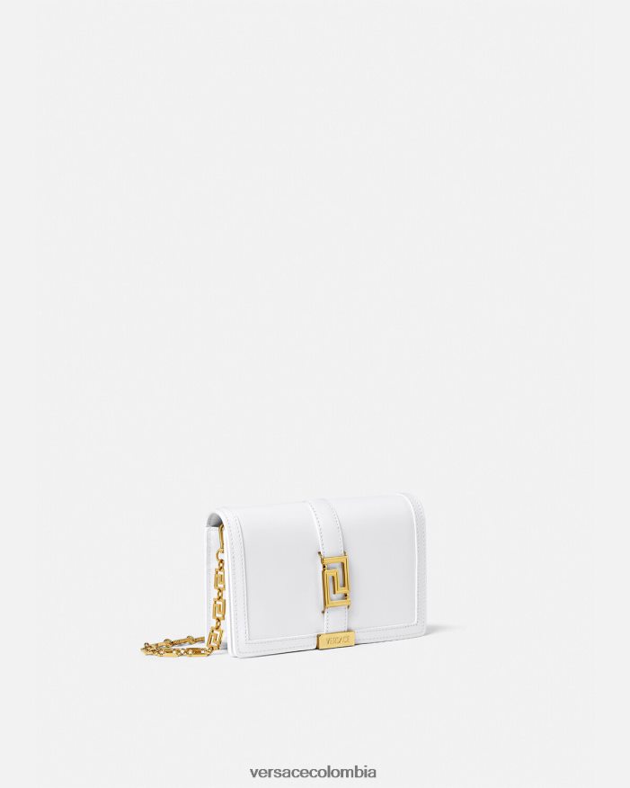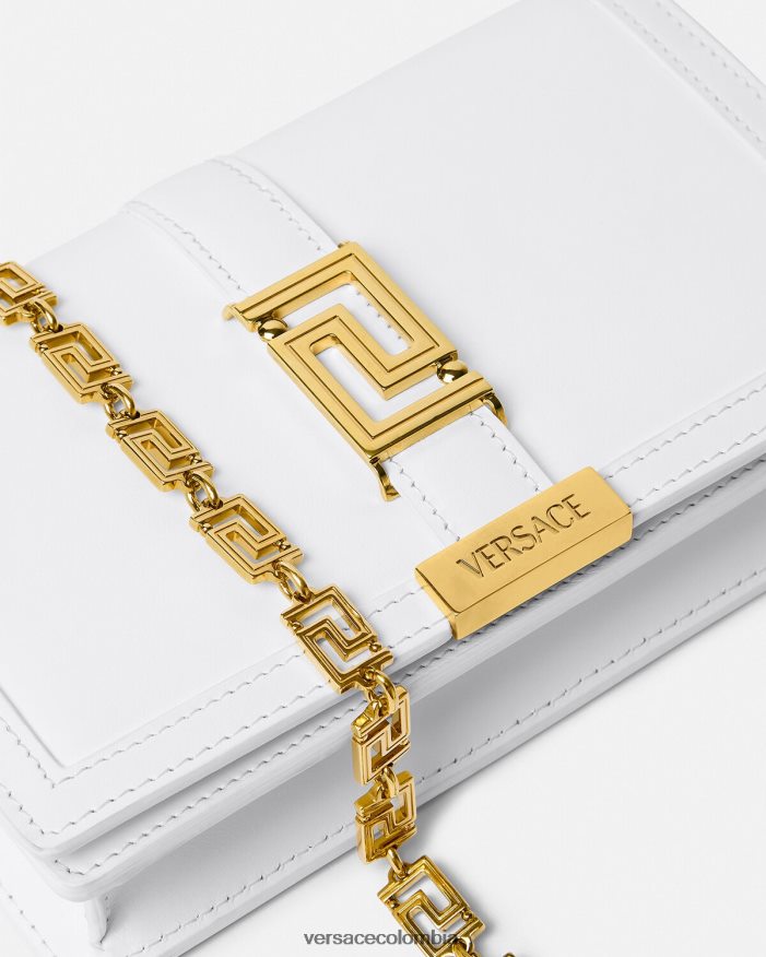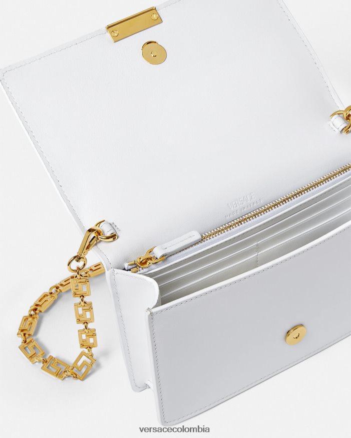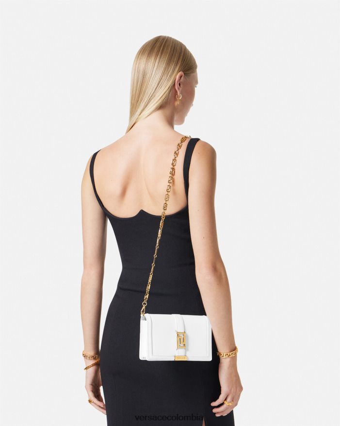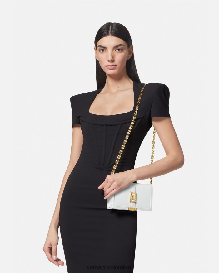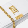 El minibolso Greca Goddess está realzado por la cadena Greca, un símbolo característico de Versace, construido a partir de una línea ininterrumpida. Elaborado en Italia con cuero liso, este bolso de noche se puede llevar como bolso de hombro o cruzado gracias a su correa de cadena desmontable.