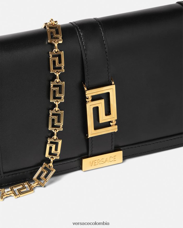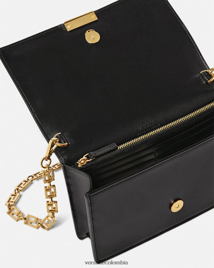 El minibolso Greca Goddess está realzado por la cadena Greca, un símbolo característico de Versace, construido a partir de una línea ininterrumpida. Elaborado en Italia con cuero liso, este bolso de noche se puede llevar como bolso de hombro o cruzado gracias a su correa de cadena desmontable.