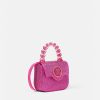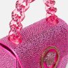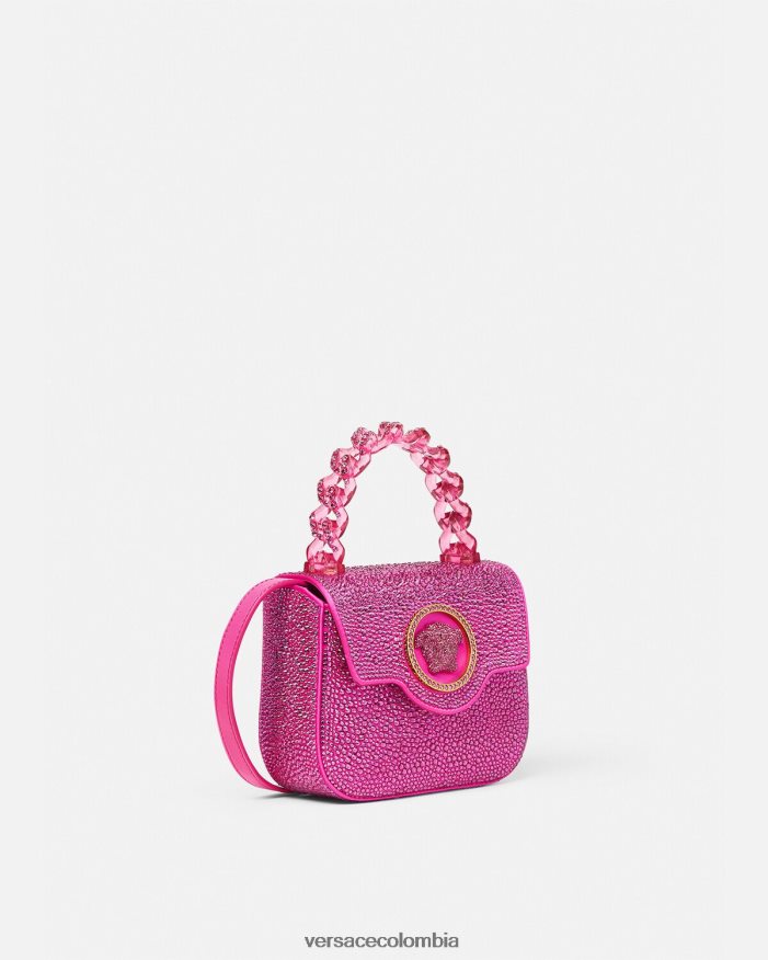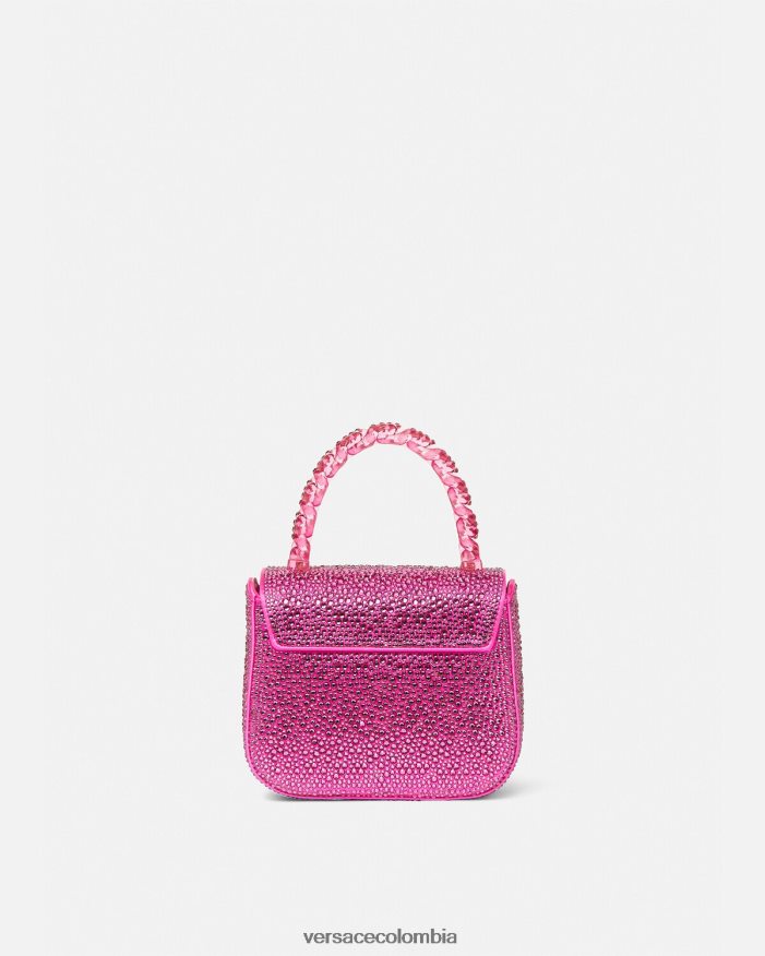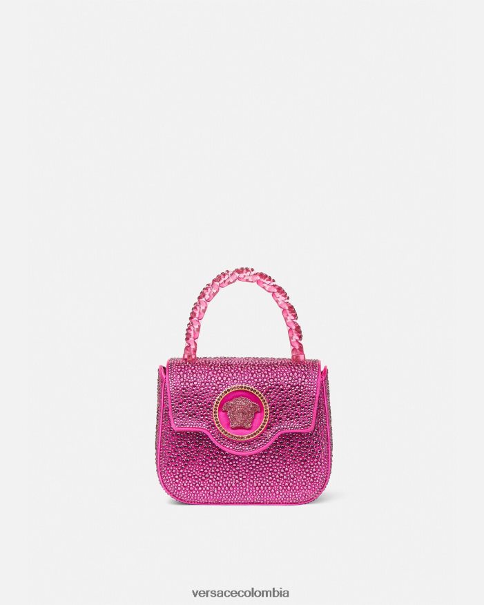 El mini bolso la Medusa ha sido elaborado en Italia con un acabado satinado y está enriquecido con adornos de cristal tonales. la medusa central se reconoce al instante y el asa superior de cadena fija añade una opción de transporte alternativa junto con la correa para el hombro ajustable y desmontable.