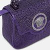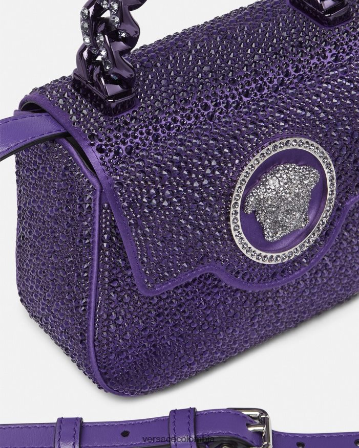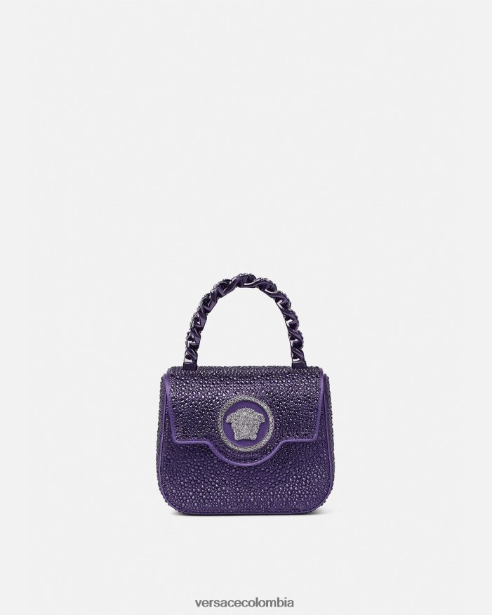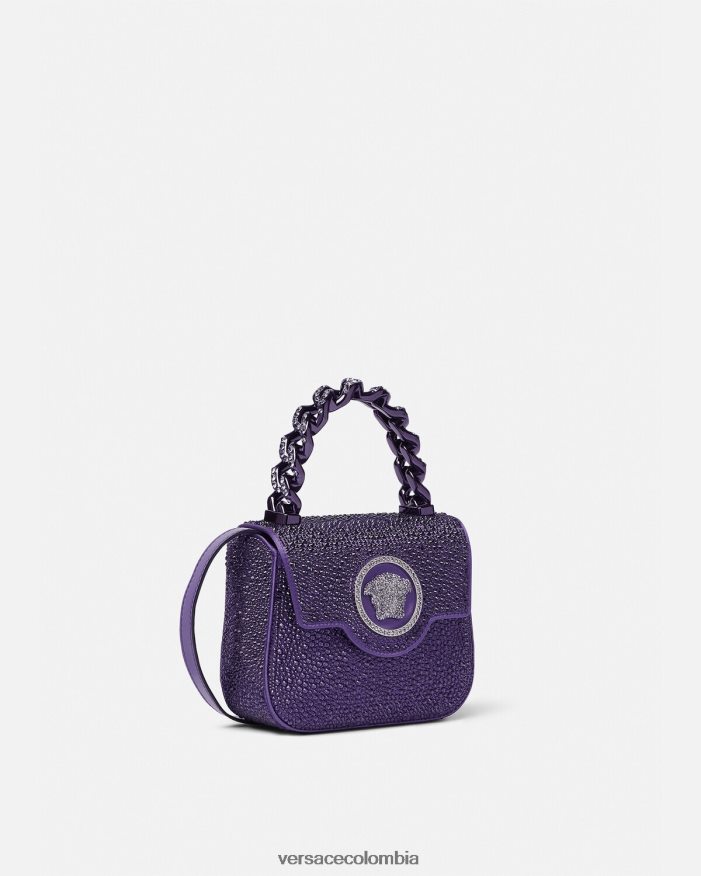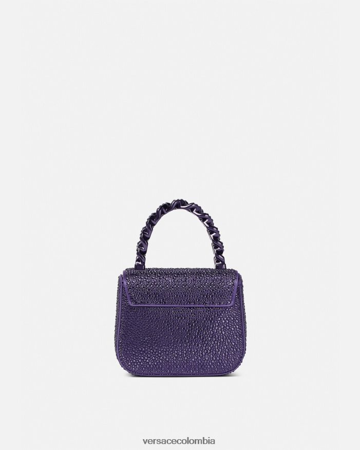 El mini bolso la Medusa ha sido elaborado en Italia con un acabado satinado y está enriquecido con adornos de cristal tonales. la medusa central se reconoce al instante y el asa superior de cadena fija añade una opción de transporte alternativa junto con la correa para el hombro ajustable y desmontable.