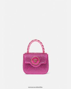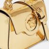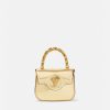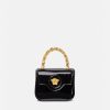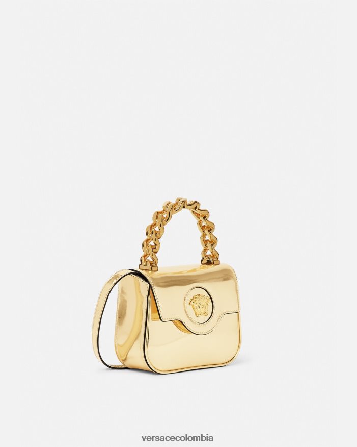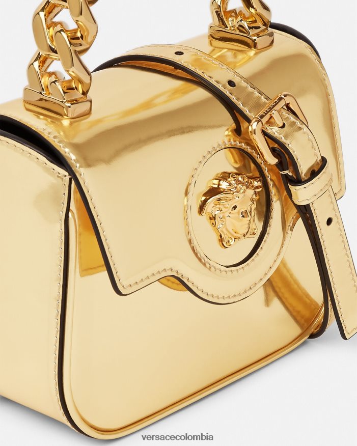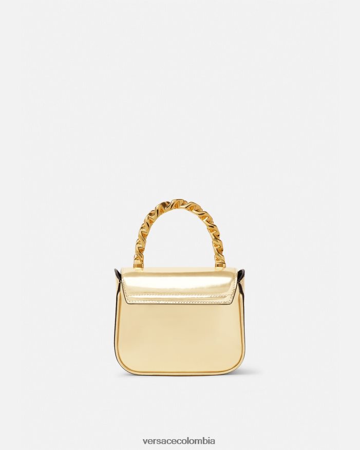 Elaborado en Italia con cuero brillante, este diseño presenta un asa superior de cadena rígida. Está adornado con una medusa central en tono dorado y cuenta con una correa para el hombro ajustable.