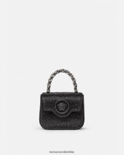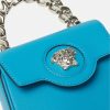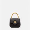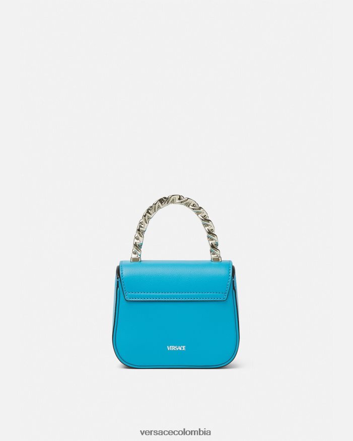 El mini bolso la medusa ha sido elaborado en Italia con cuero granulado. la medusa central se reconoce al instante y el asa superior de cadena fija añade una opción de transporte alternativa junto con la correa para el hombro ajustable y desmontable.