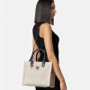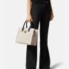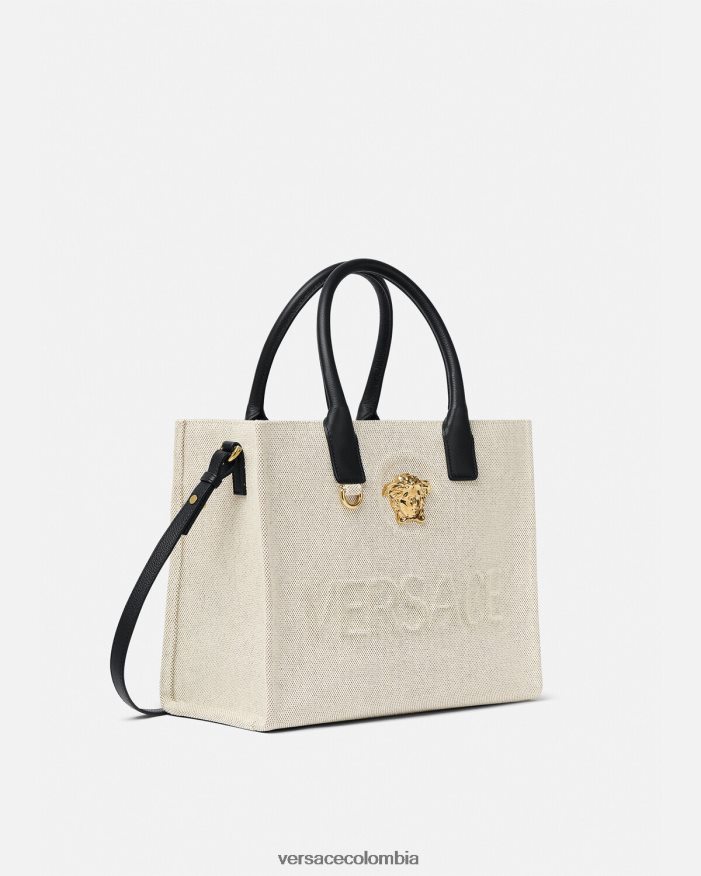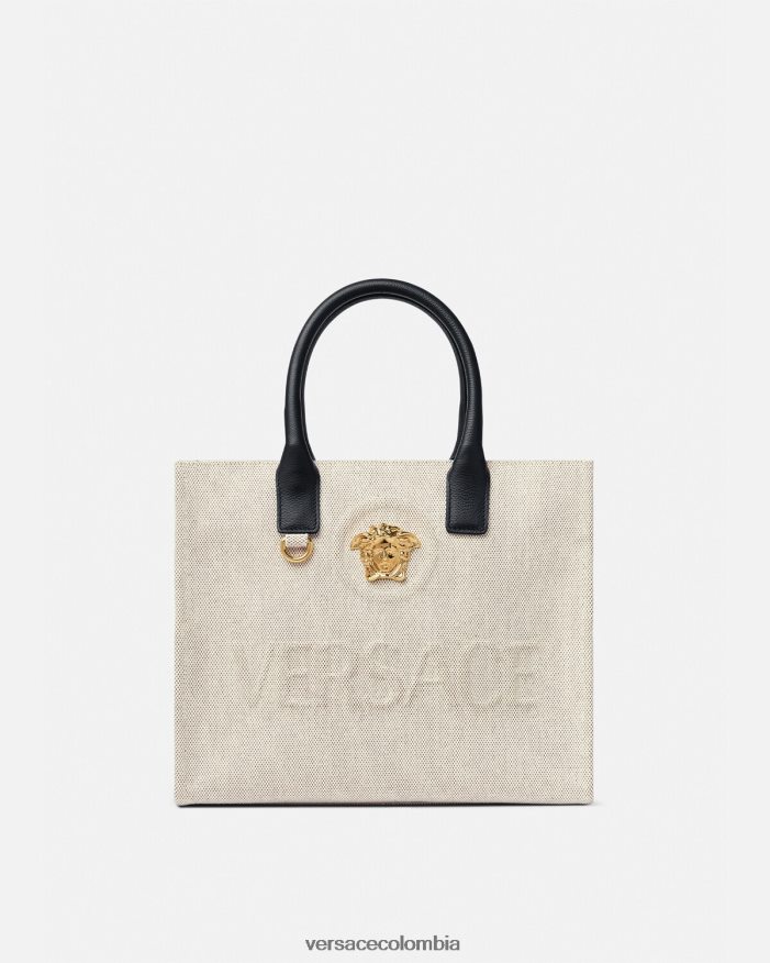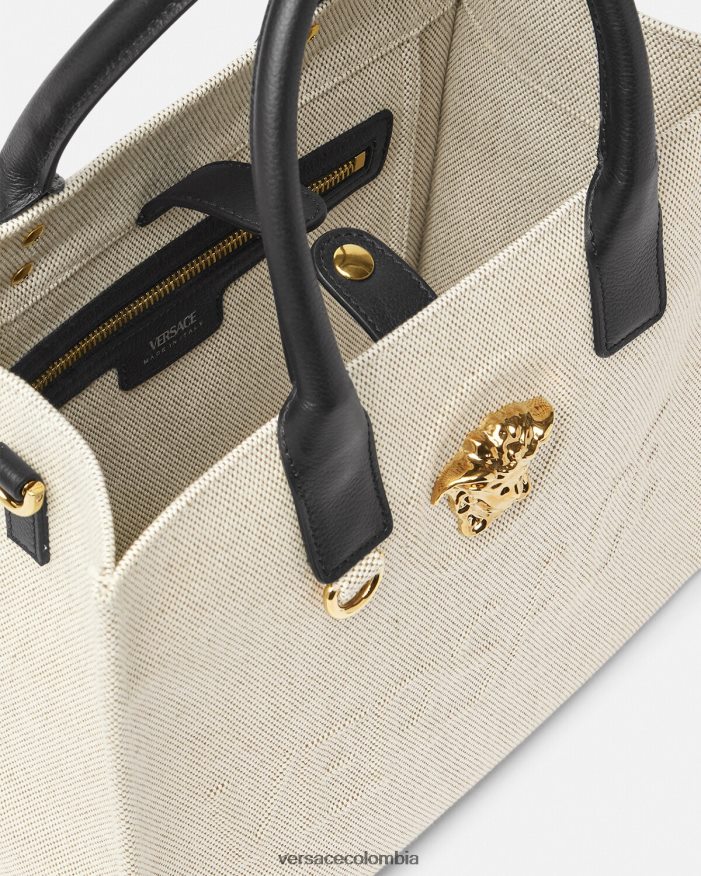 Este bolso tote de lona está adornado con una placa central de la medusa y un logo bordado en el mismo tono. las asas superiores rígidas están confeccionadas en cuero y el espacioso interior tiene dos bolsillos con cremallera y una correa protectora. El modelo viene con una correa para el hombro ajustable y desmontable.