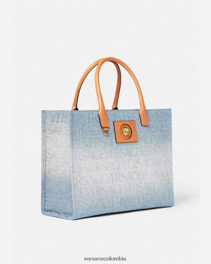 mujer bolso tote grande de mezclilla Versace azul claro 2RP40F324 bolsas