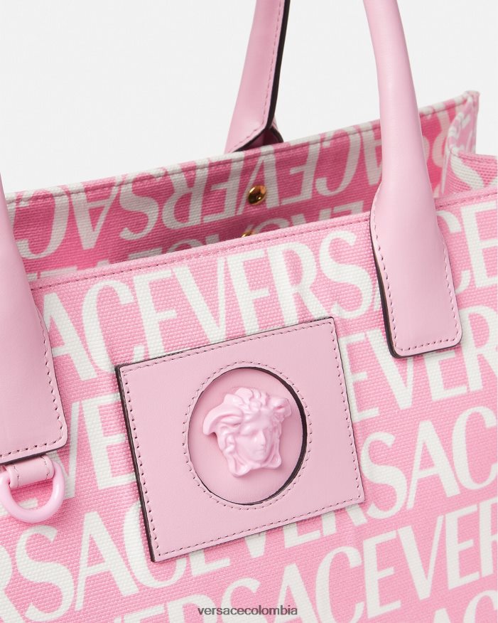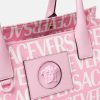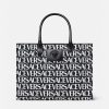 Este bolso tote de lona está adornado con una placa central de la medusa y un logotipo de Versace en contraste. las asas superiores rígidas están confeccionadas en cuero y el espacioso interior tiene un bolsillo con cremallera y una correa protectora.