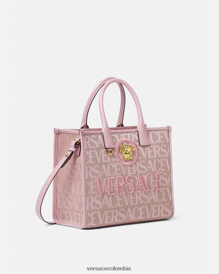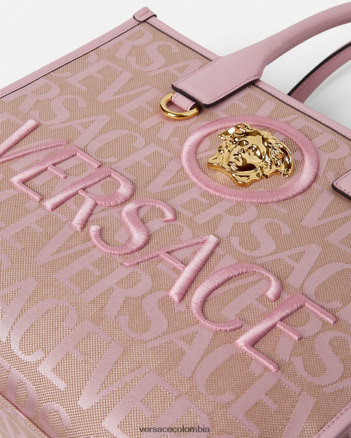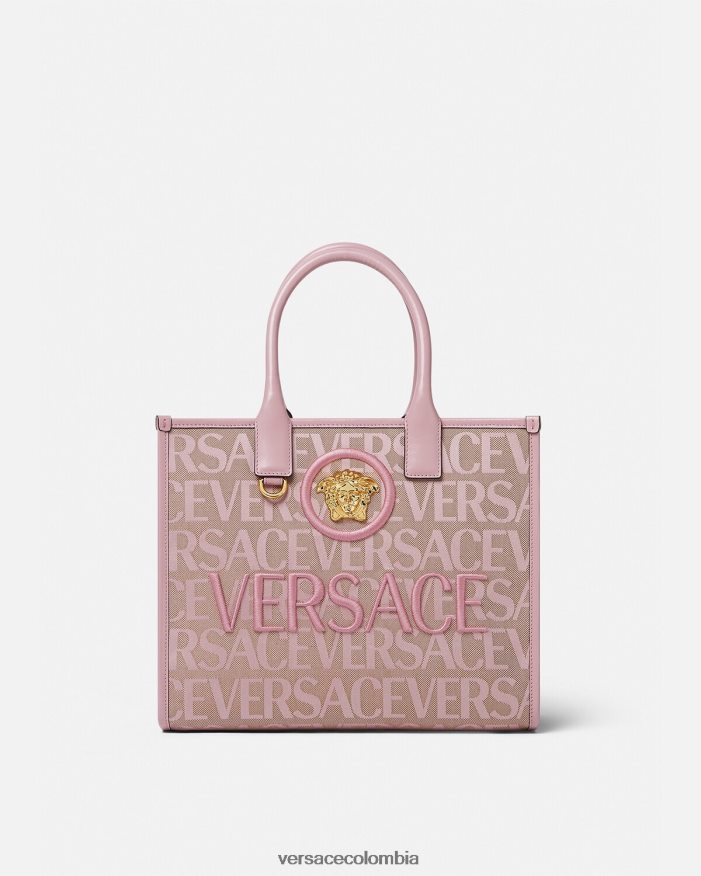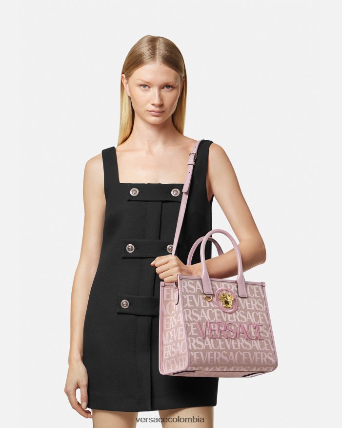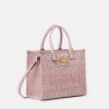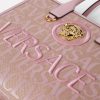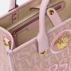 Este bolso tote está confeccionado con un patrón jacquard integral de lona de Versace y cuenta con una correa para el hombro ajustable y desmontable y adornos de cuero. El diseño está adornado con piezas metálicas de la Medusa y un logotipo de Versace bordado. El espacioso interior está organizado con un bolsillo con cremallera y cierre de botón a presión.