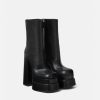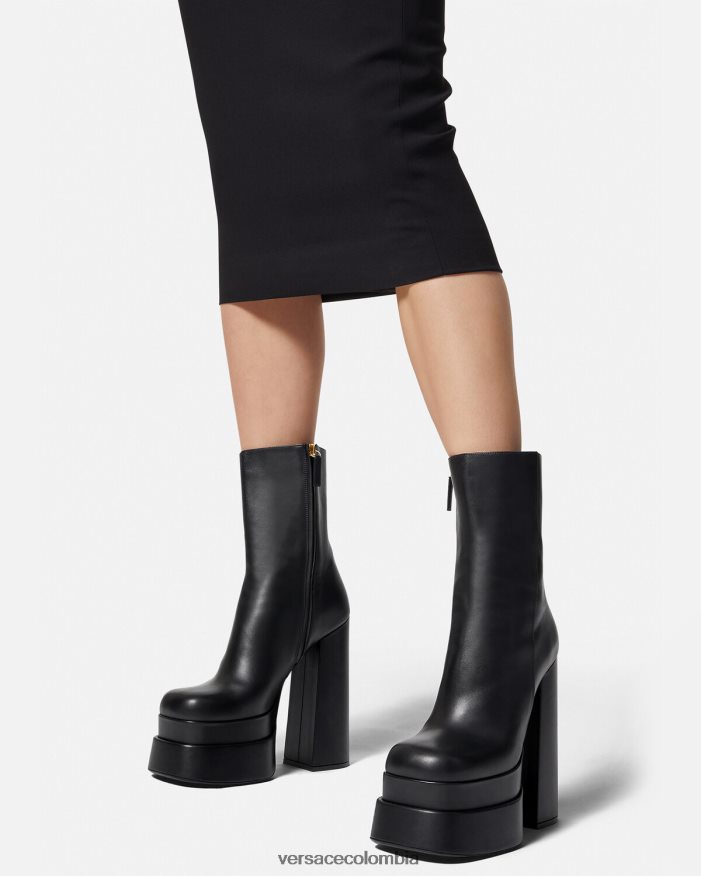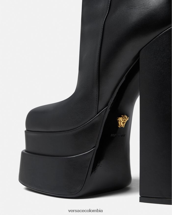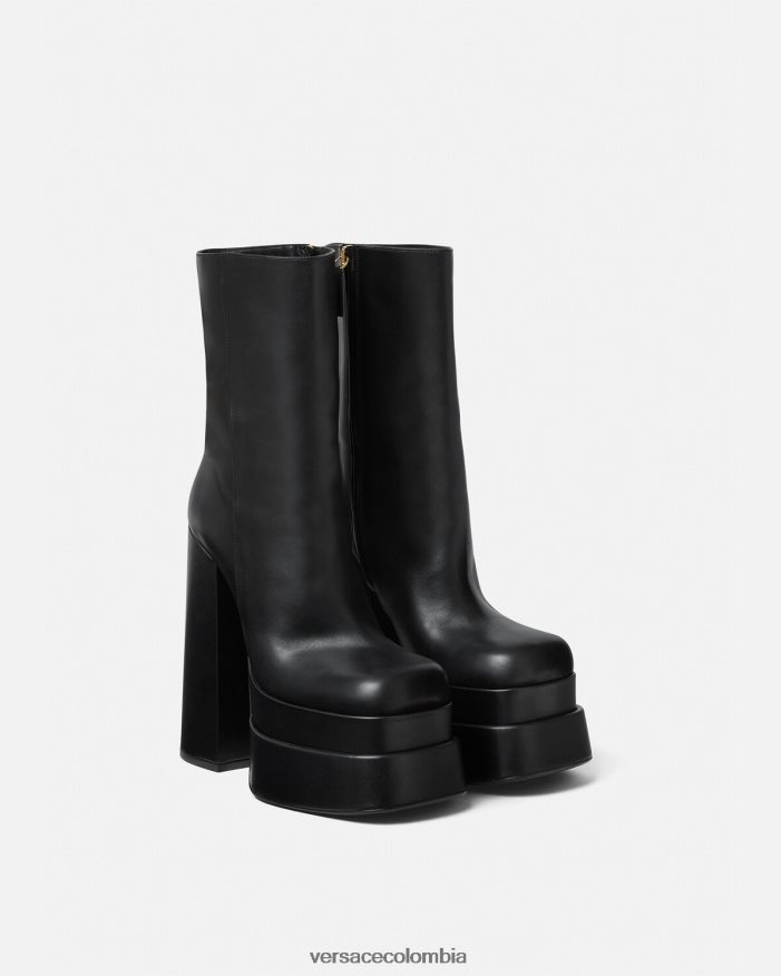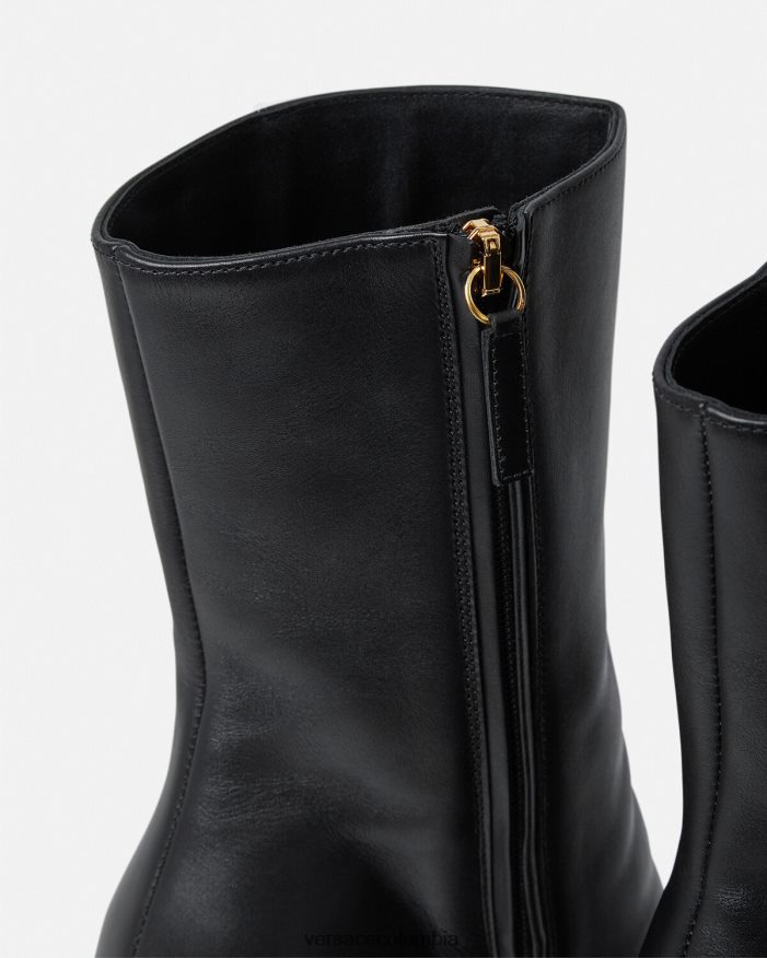 Favorecidos por Donatella Versace, estos botines cuentan con un tacón alto en bloque y una plataforma doble. Confeccionados en piel de becerro flexible, el par está acentuado por una cremallera de Medusa distintiva en los laterales.