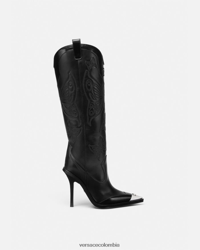 mujer botas altas con mariposas Versace negro 2RP40F473 zapato