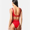 mujer braguitas de bikini de talle alto con borde con Greca Versace rojo 2RP40F1154 ropa interior y ropa de playa