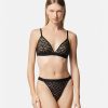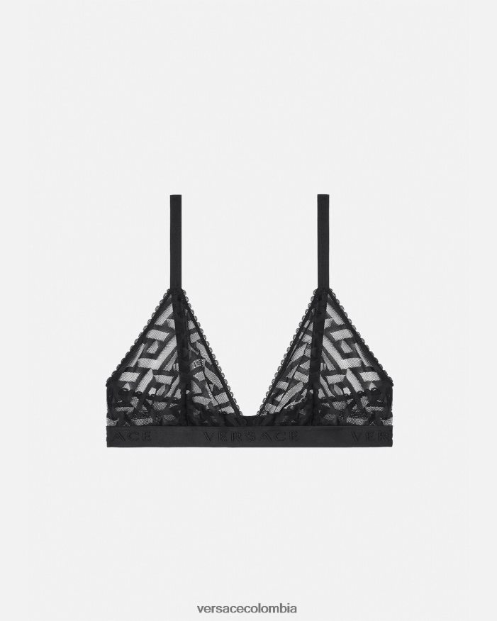 Confeccionado con tul ligero, este sujetador triangular presenta el estampado de La Greca, un diseño de pasarela que presenta la llave griega junto con el logotipo de Versace en varios tamaños y combinaciones de colores.