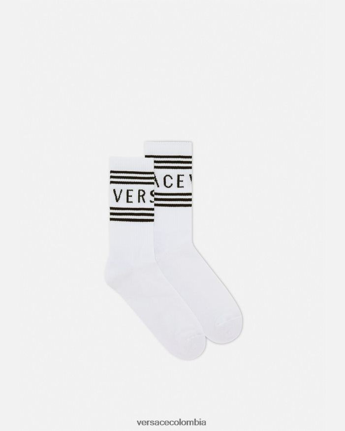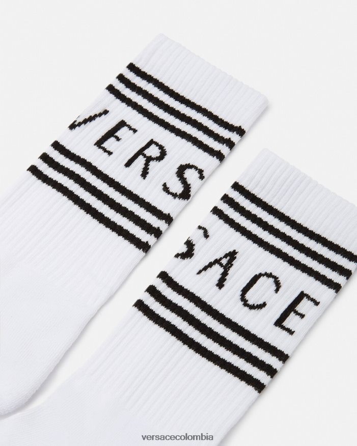 Estos calcetines hasta los tobillos están confeccionados en algodón con un logo estampado acanalado en los bordes.